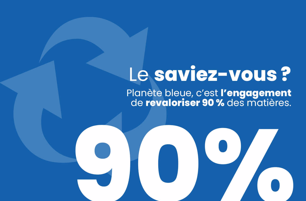Chez Planète Bleue Environnement, 90% des matières collectées sont revalorisées plutôt qu’envoyées à l’enfouissement. Un geste simple, mais qui fait une énorme différence pour notre planète